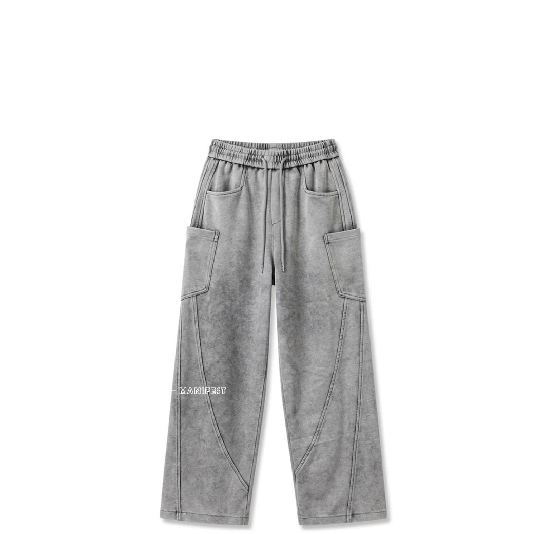 bottom-/ 車線口袋寬棉褲