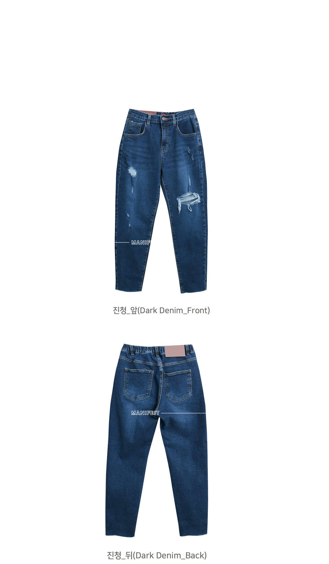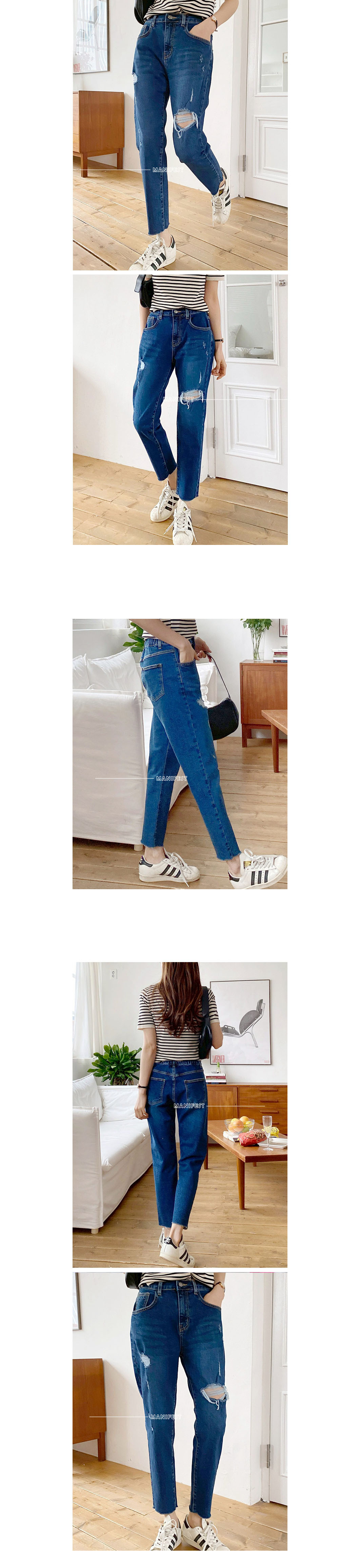 ᴴᴼᵀ ▸▸店長推薦◃◃ 秋冬新款/後鬆緊破損男友褲 MANIFEST正韓🇰🇷