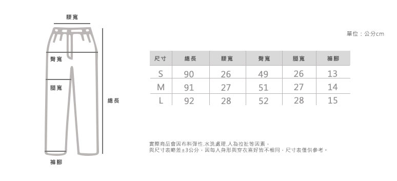中高腰   後鬆緊褲頭