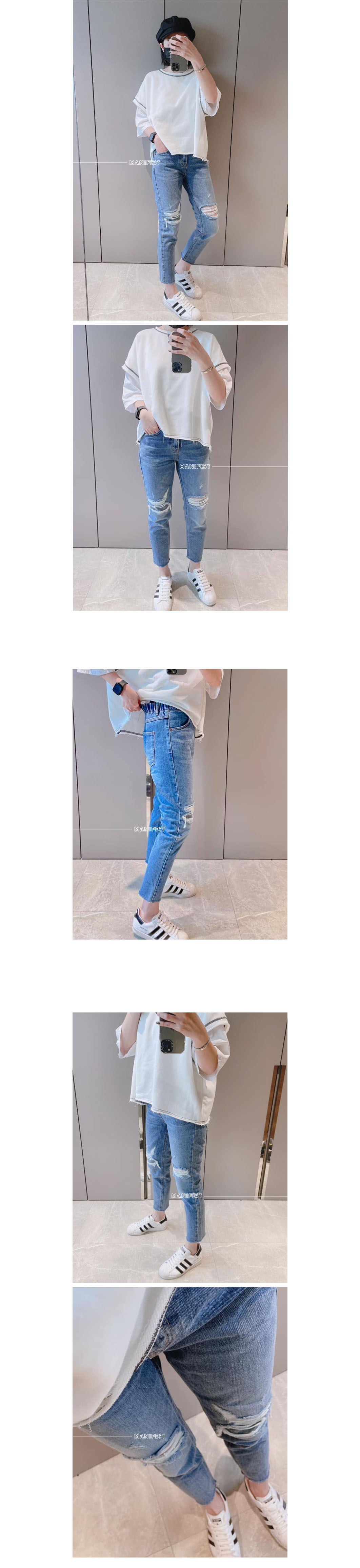 持續的破褲 「後鬆緊男友褲版型」