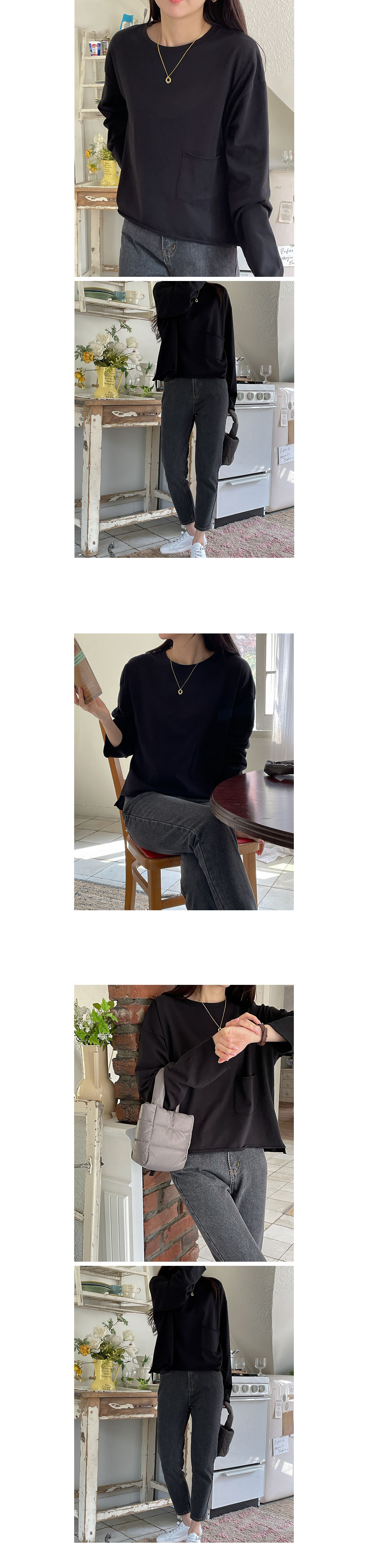 Top-/ 前後大小口袋 薄長t
