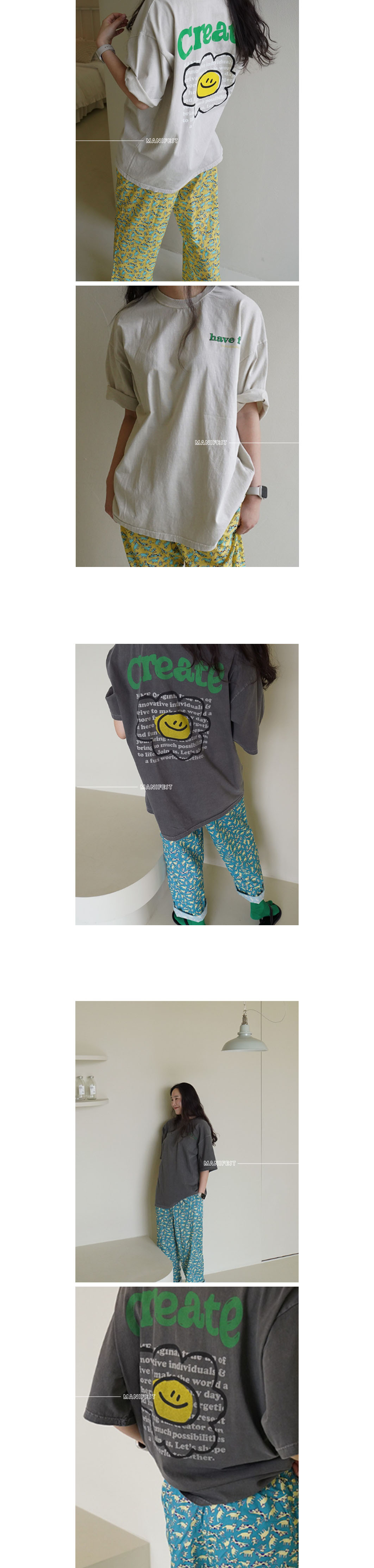 Top-/ 英字荷包蛋花長版上衣